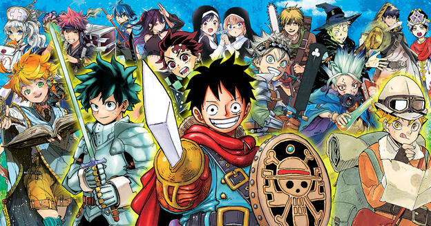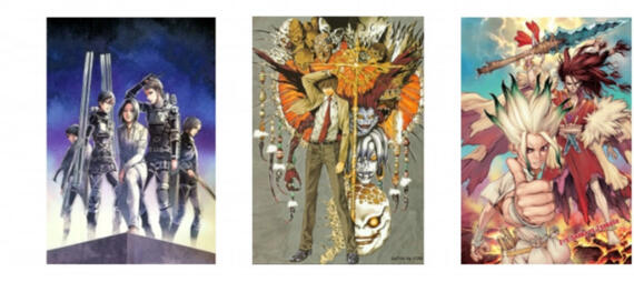attack on titan, death note, dr. stone. my hero academia, haikyuu, demon slayer, mob psycho 100, blue lock, tokyo revengers, mystic messenger, enstars